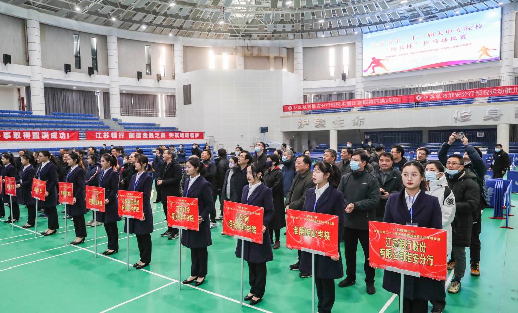 上午8:30举行了开幕式。校党委书记吉文桥,党委副书记、院长吴彬江,市教育局三级调研员、教育工会主席胡金浪,市乒乓球协会主席吴兆方,江苏银行淮安分行副行长吴劲松出席开幕式,开幕式由胡金浪主持。