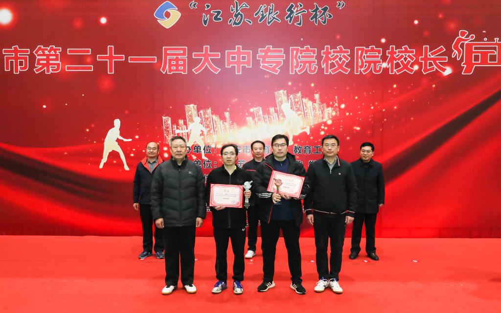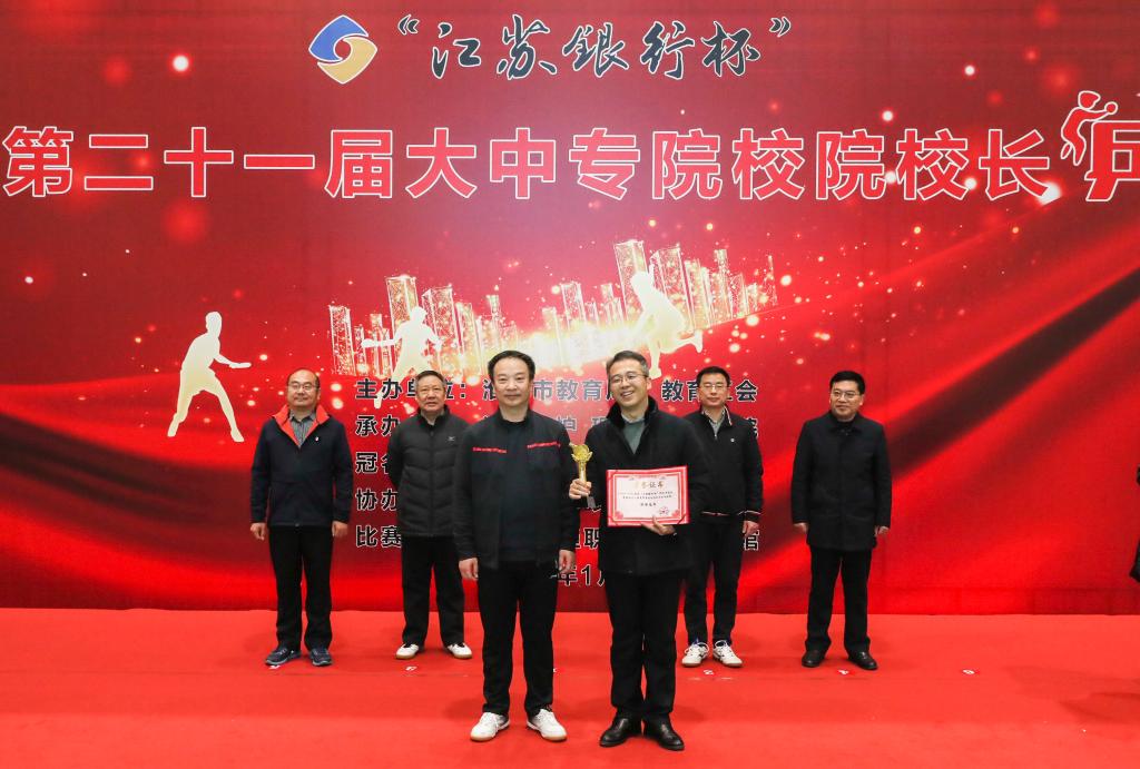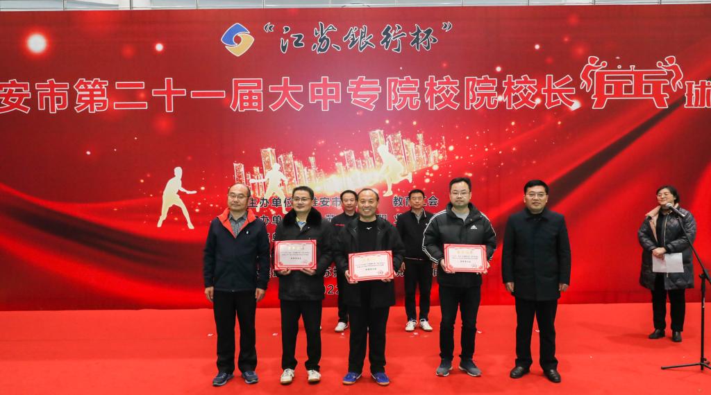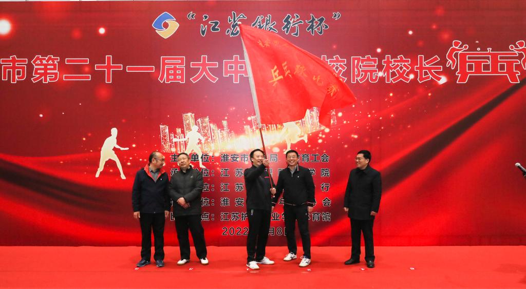 最后举行会旗交接仪式,第22届大中专院校院(校)长乒乓球比赛将在淮安生物工程高等职业学校举办。