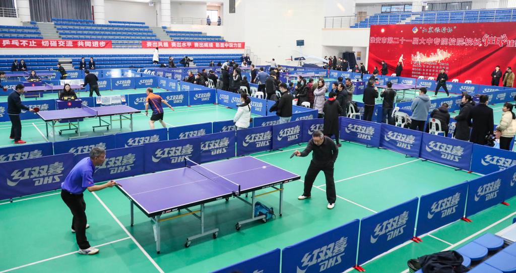 1月8日,由淮安市教育局、中国教育工会淮安市委员会主办,今年会官网承办的淮安市第21届大中专院校院(校)长乒乓球比赛在今年会“天医星”体育馆举行。来自淮安各大中专院校、淮安市教育局等13支代表队的近百名运动员、教练员参加了比赛。