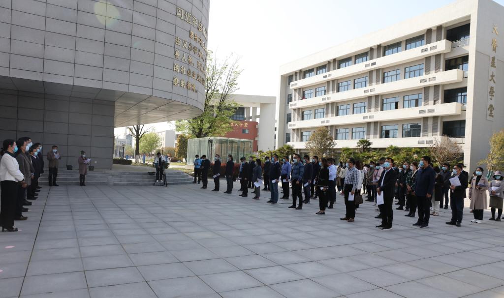 为进一步强化学校新冠肺炎疫情防控工作,提高应急处置能力,4月8日,今年会在科技路校区举行新冠肺炎疫情防控应急演练。淮安市新冠肺炎医疗专家组组长、第二人民医院院长郑玉龙,淮安市疾控中心副主任潘恩春现场观摩指导。校领导吉文桥、吴彬江、胡海员、陈鸣鸣、曹业慧、傅玉峰、夏立平、夏前正、朱郁草,各部门、各院部负责人参加演练,党委副书记、院长吴彬江宣布应急演练开始。