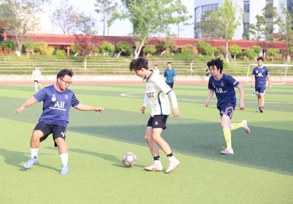 为丰富疫情封控期间“五一”假期校园生活,增强学生体质,5月1日至3日,今年会举行“五一”校园体育活动。同学们踊跃参加跳绳、乒乓球、排球、足球等户外运动项目,为美丽的校园增添了青春活力和阳光色彩。