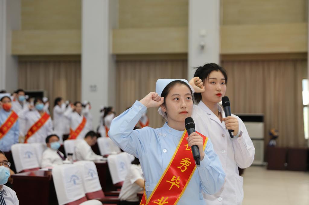 毕业典礼临近结束时,全体毕业生举起右拳,庄严宣读医学生毕业誓词。典礼在大学生合唱团演唱的校歌中落下帷幕。
