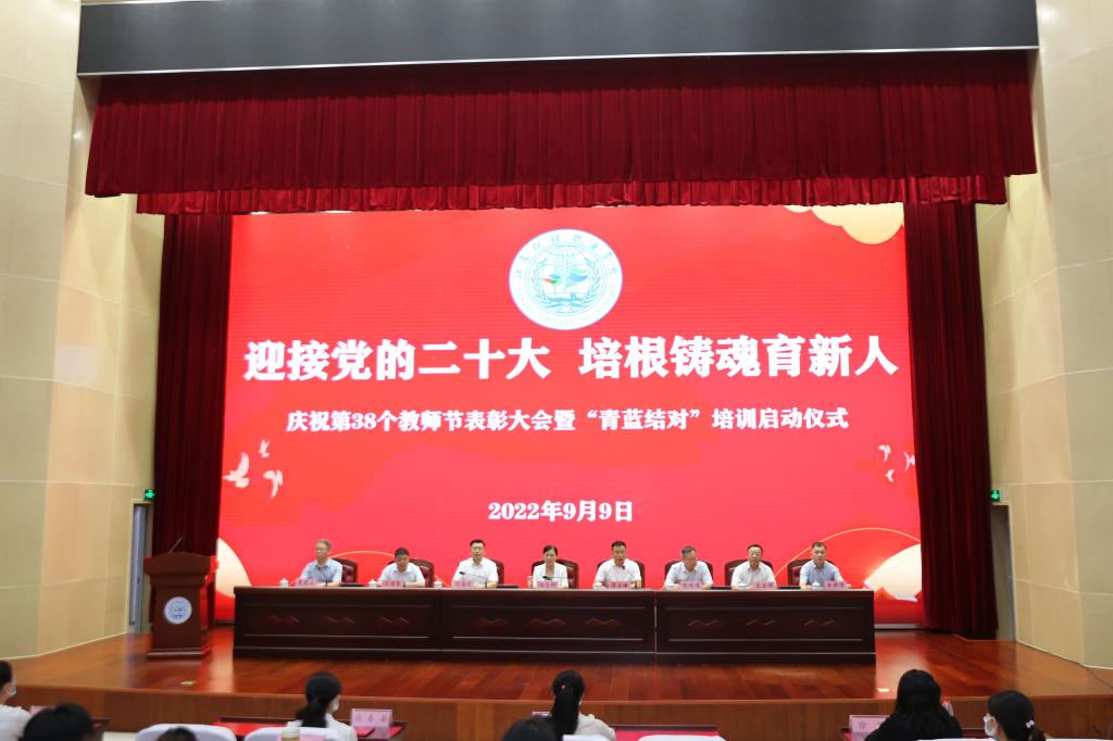 春华秋实,桃李沁香。9月9日下午,今年会举行庆祝第38个教师节表彰大会暨“青蓝结对”培训启动仪式。会议在学术报告厅设主会场,分会场以线上云直播的形式同步进行。在淮校领导出席大会,各二级学院、各部门主要负责人,教授、博士、国赛一等奖团队、受表彰教师、“青蓝结对”教师在主会场参加大会,大会由党委副书记、院长傅玉峰主持。
