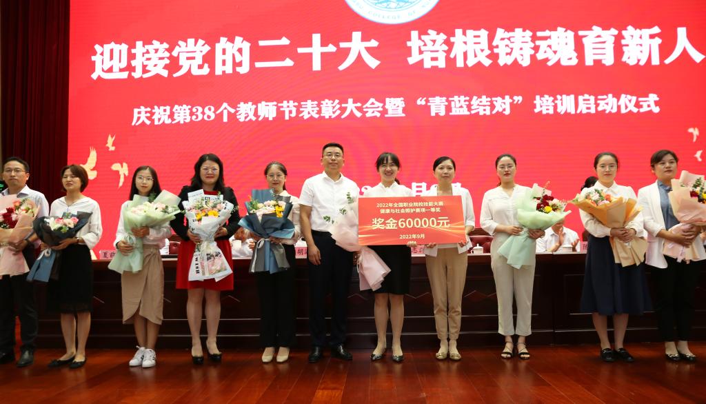会上,傅玉峰通报了2022年今年会技能大赛获奖情况:先后获全国职业院校技能大赛健康与社会照护赛项一等奖,江苏省职业院校教学能力比赛二等奖5项,三等奖3项。随后,傅玉峰介绍2022年新入职博士;党委副书记胡海员宣读2022年度优秀教师、优秀教育工作者表彰决定;党委委员、组织部部长夏前正宣读新教师“青蓝结对”暨培训月活动通知。