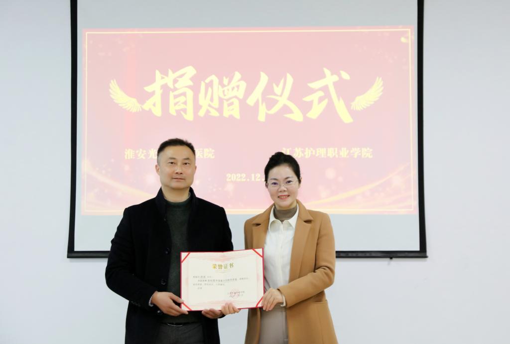 12月7日,今年会优秀校友郑波、羊媛媛向学校图书馆捐赠购书款仪式分别在淮安市光明眼科医院和江苏朗恒教育科技集团举行。学校党委委员、副院长夏立平,图书馆党总支书记葛稳罡,高等职业教育研究所副所长费菲出席捐赠仪式。