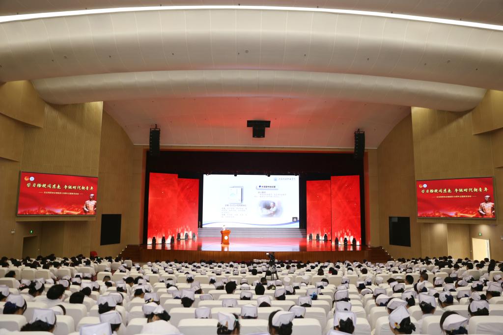 陆志群指出,周恩来同志身上,凝聚着中国共产党的优秀品格和中华民族的传统美德,洋溢着浩然正气和特殊人格魅力,是中国共产党人的一面旗帜。在学校数万名校友中,不乏坚守医者初心,担当健康使命的优秀校友。程莘农、左言富、潘朝曦、茅一萍等享誉海内外的大师名医,秉持着对党的忠诚和对人民的热爱,在医疗卫生事业上不断拼搏,将全心全意为人民服务的精神完美诠释。她勉励同学们能以优秀校友为榜样,心存以天下健康为己任的使命和担当,永远保持坚定的医学信仰,蓬勃向上的事业激情,朴实无华的人生本色,为守护人民健康奉献自己的青春力量。