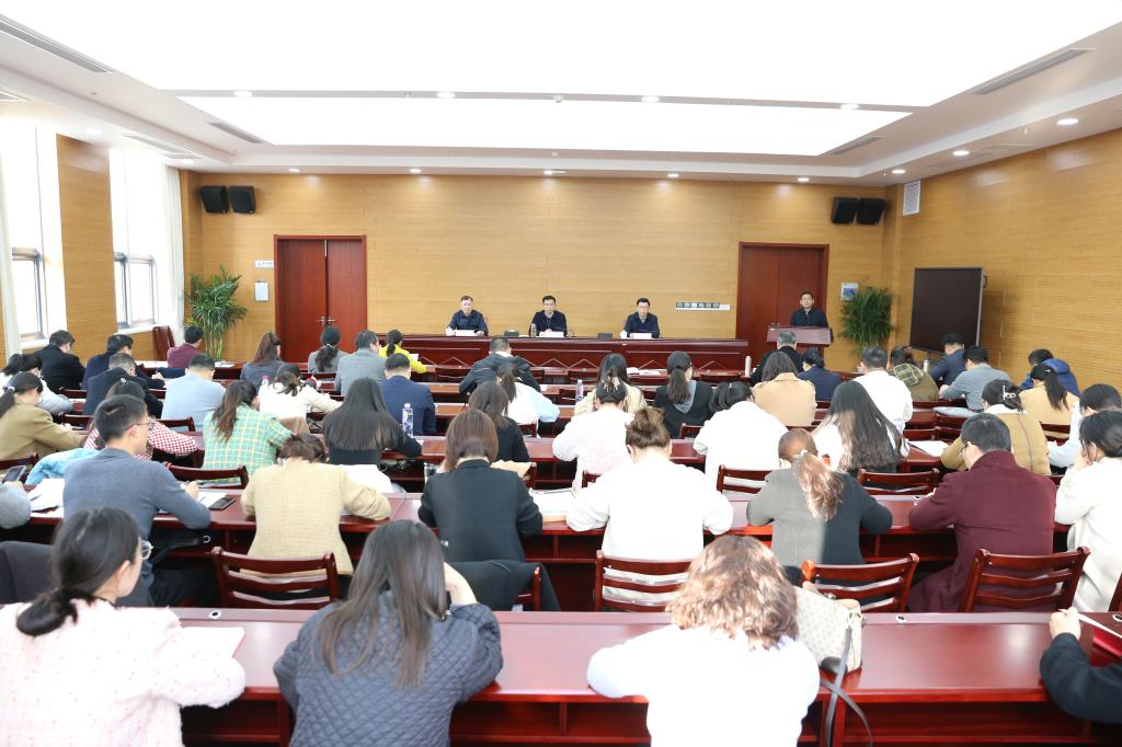 为认真贯彻落实教育部《关于开展2023届高校毕业生春季促就业攻坚行动》的通知精神,促进今年会毕业生更加充分更高质量就业,今年会于3月7日下午召开了2023届毕业生就业工作推进会,党委副书记、院长傅玉峰出席会议并讲话,党委副书记胡海员主持会议,招生就业处、各二级学院负责人,以及负责就业工作辅导员、2023届毕业班全体班主任参加了会议。