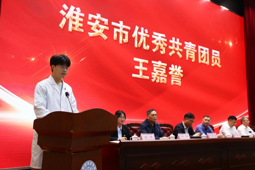 江苏省五四红旗团总支获奖单位、健康与康复学院辅导员闫娇,淮安市优秀共青团干部任会,淮安市优秀共青团员王嘉誉,江苏省“乡村振兴计划”志愿者代表、2022届毕业生赵丹丹,淮安市“学雷锋”志愿服务先进典型栾雅雯,淮安市青年大学习“学习标兵”朱曦悦分享了属于他们的青春故事,充分展示新时代青年的青春风采。