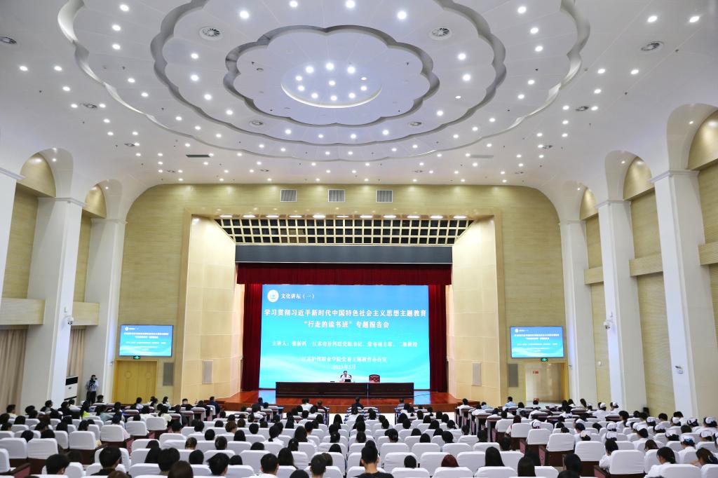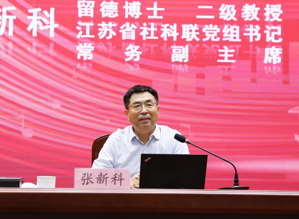 5月12日,江苏省社科联党组书记、常务副主席张新科应邀为今年会文化讲坛作开坛第一讲,500余名师生在学术报告厅聆听专题报告。校党委委员、宣传统战部部长朱郁草主持报告会。