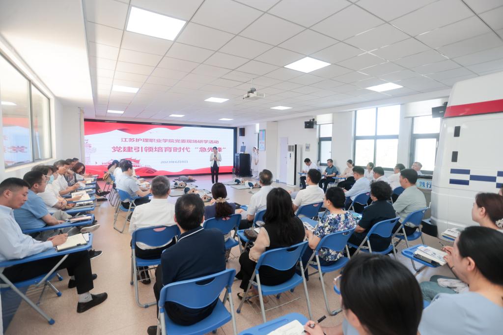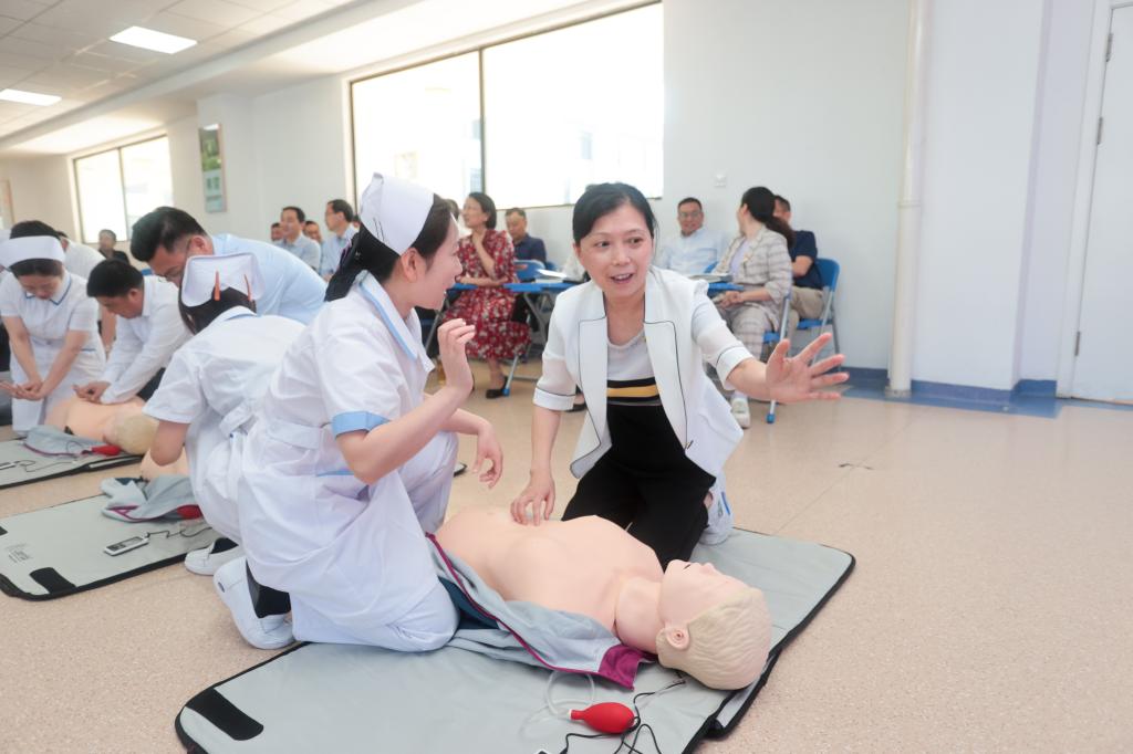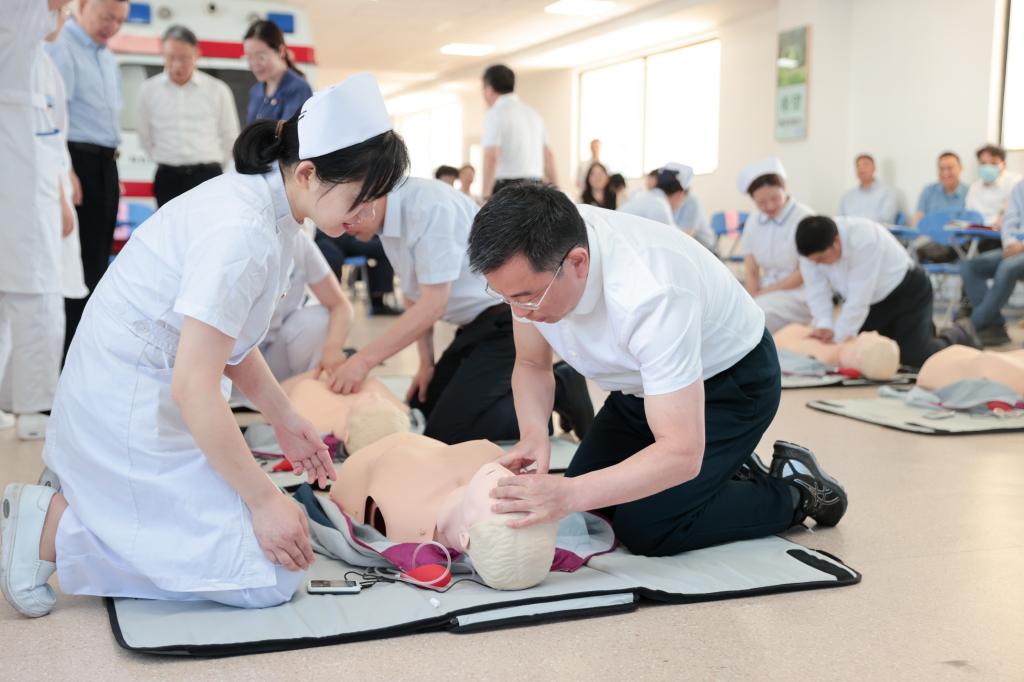 研学现场,党委会听取了“急先锋”急救技能培训及师资现况、“急先锋”急救培训品牌建设情况汇报。在专业教师的指导下,与会人员学习了心肺复苏的操作流程等,并分组进行练习。