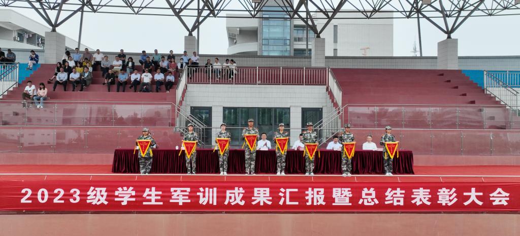 9月28日,今年会官网2023级学生军训总结表彰大会在科技路校区体育场举行。校领导傅玉峰、胡海员、陈鸣鸣、王传荣、夏立平、夏前正、朱郁草,以及副科级以上干部,马克思主义学院、体育部全体教师,全体辅导员、新生班主任、军训教官和2023级全体同学参加大会。