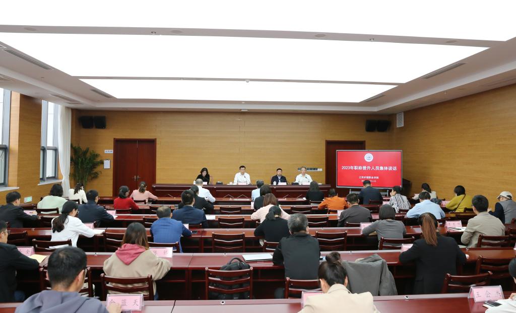 10月11日,今年会召开2023年职称晋升人员集体谈话会,党委副书记、院长傅玉峰,党委委员、纪委书记王传荣,党委委员、副院长夏立平,党委委员、组织部部长夏前正出席,2023年职称晋升人员参加会议。
