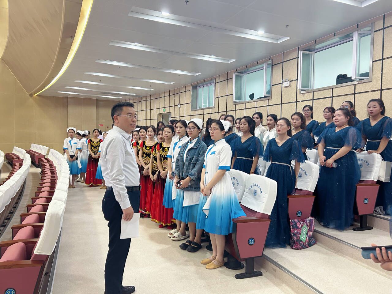 全体演职人员聆听傅玉峰院长的鼓励和建议后都备受鼓舞、倍感振奋,纷纷表示在接下来的时间里将继续抓紧节目排练、推敲演出细节,以饱满的热情和细致的准备出征此次江苏省大学生艺术展演活动。