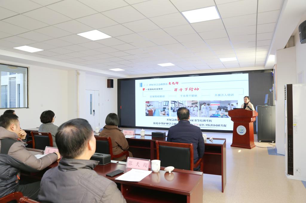 陆志群在介绍学校急救教育培训情况时指出,近年来,在省红十字会和市委、市政府的关心支持下,在市红十字会的指导帮助下,学校围绕实施健康中国战略,立足高素质急救技能人才培养,创新探路、积极作为,构建急救人才培育链,争做急救教育先锋学校,培育出一大批懂急救、会急救、敢急救的时代先锋,获评全国急救教育试点学校、全国无偿献血促进奖、省红十字示范学校、美国心脏协会(AHA)急救培训基地,党建引领培育时代“急先锋”育人实践立项省高校思政精品项目。目前,学校正和市红十字会共同打造全国一流、省内最大的应急救护培训基地,积极创建省级应急救护培训示范基地,将“急先锋”育人品牌作为展示淮安乃至全省急救教育的重要窗口。