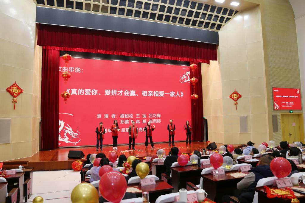 团拜会上,各二级党组织表演了精彩的文艺节目,充分抒发爱党爱国的真挚情怀,对过去一年收获累累硕果的喜悦,对建成“质量一流、特色鲜明、省内领先、国内知名”医药卫生高等职业院校的美好期待。