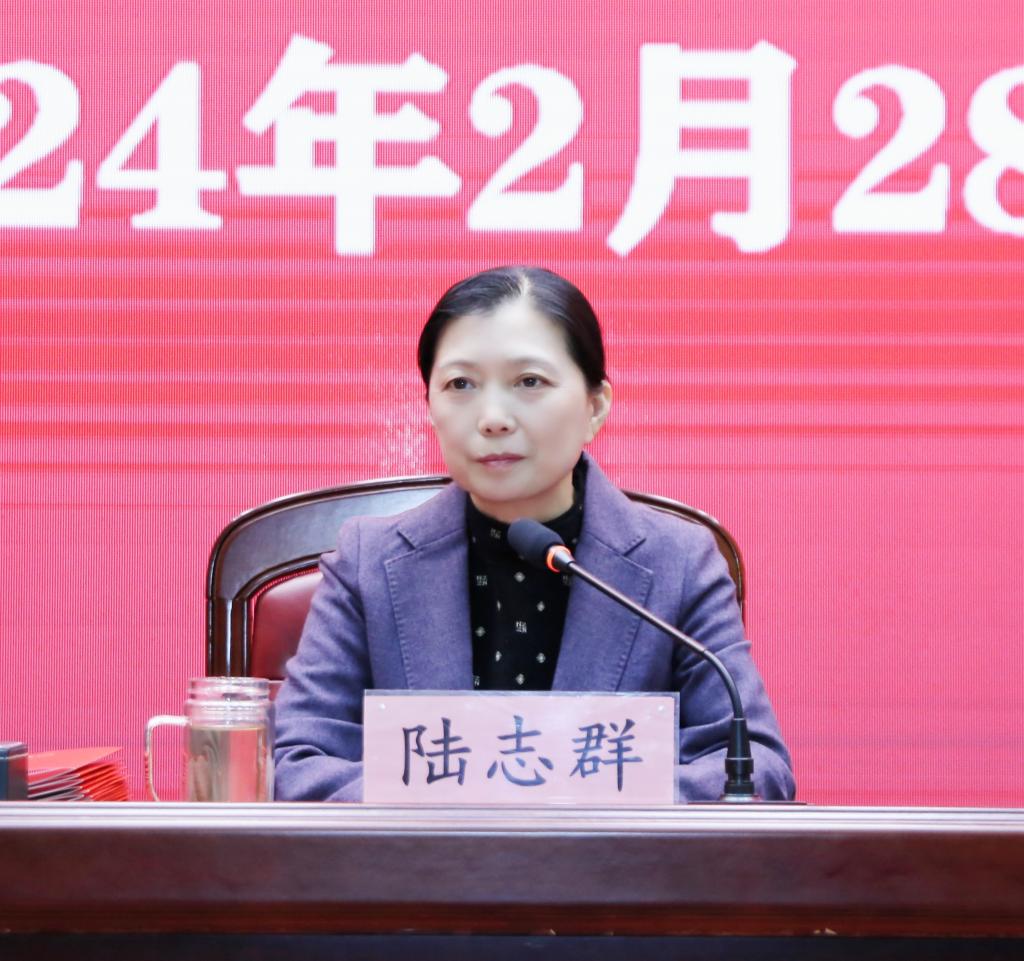 陆志群在讲话中充分肯定了学校2023年高质量发展取得成绩,特别是一大批“国字头”项目的突破,党建引领培育时代“急先锋”品牌的打造,各类大赛竞赛中争金夺银,充分展现了全校上下攀高比强、跨越赶超的精气神。