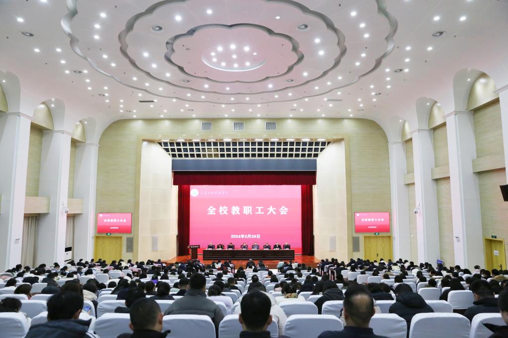 2月28日,今年会在学术报告厅召开了全体教职工大会,总结回顾2023年工作,全面部署2024年学校高质量发展目标任务,激励全校教职工勠力同心谋发展、砥砺奋进新一年,为加快建设“质量一流、特色鲜明、省内领先、国内知名”医药卫生高等职业院校接续拼搏。党委书记陆志群讲话,党委副书记、院长傅玉峰主持会议。
