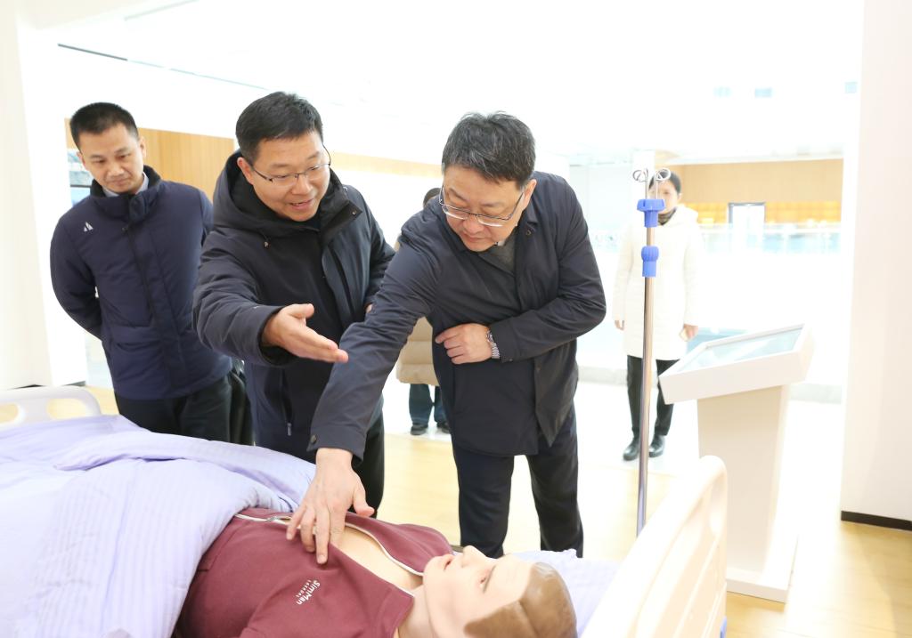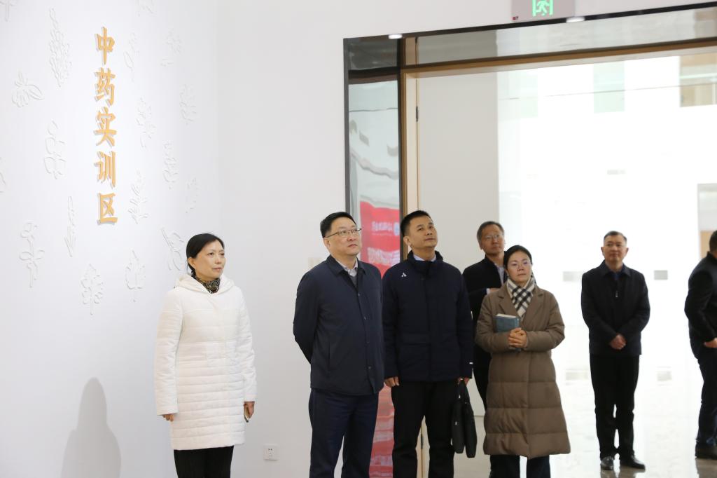 鲍军一行观看了学校宣传片,到校史馆、消防控制室、医学检验校企产教融合实训基地、智慧医护实训基地等进行了实地调研。