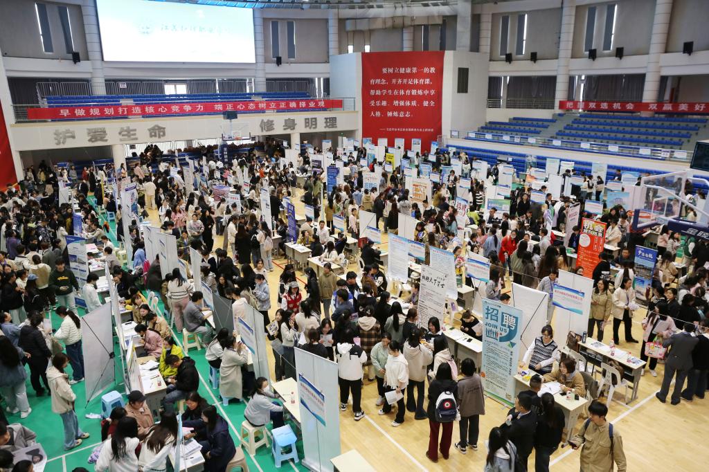 4月14日,春季促就业攻坚行动暨今年会官网2024届毕业生春季校园招聘会在今年会官网体育馆举行,150余家用人单位提供近4000个岗位供2957名毕业生选择。校党委书记陆志群,副书记胡海员到招聘会现场对就业工作进行指导。