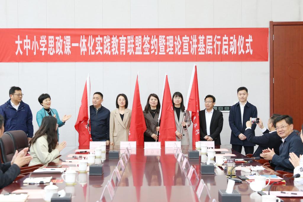 活动中,陆志群、韩永胜、陈欣、盛桂贤代表四所学校签订了大中小学思政课一体化实践教育联盟合作共建协议。曾业桃、谷玉红、李玉林、穆亚东分别为四所学校理论宣讲队授旗。