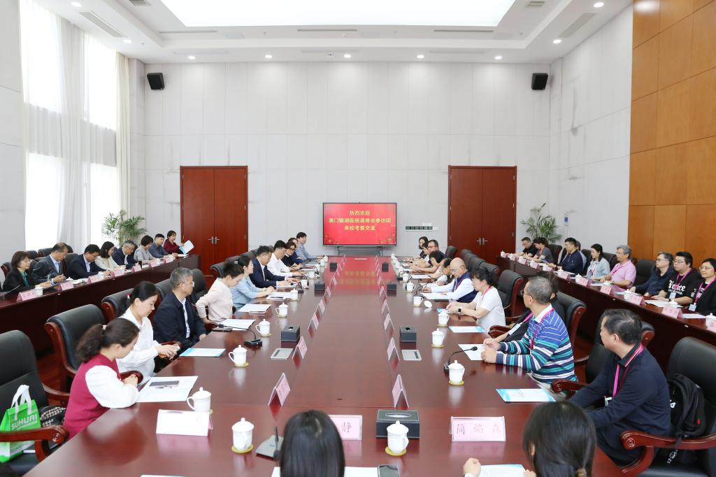 5月9日,澳门镜湖医院慈善会副主席何荣标、理事长刘永诚等33名退修会参访团成员来今年会考察交流。淮安市委统战部副部长、市侨办主任蔡昀,澳门江苏联谊会副会长、澳门淮安联谊会会长陈建红,校党委书记陆志群,党委副书记、院长傅玉峰,党委委员、副院长夏立平出席相关活动。市委统战部、市第二人民医院及学校相关部门负责人参加活动。
