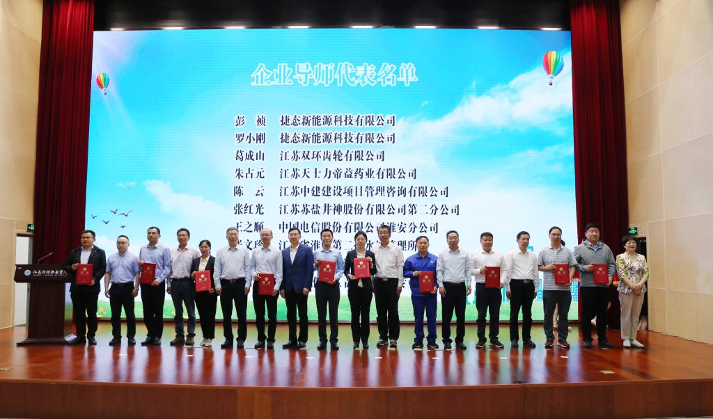 陈俊祥宣读了淮安市职业院校首批企业导师名单,与会嘉宾为企业导师颁发证书。淮安捷泰新能源科技有限公司工艺技术经理彭祯代表企业导师发言;淮安市高级职业技术学校校长林以猛代表职业学校发言。