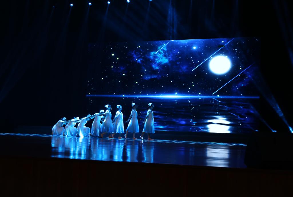 伴随着璀璨绚丽的灯光和欢乐祥和的旋律,晚会在合唱《苏护新“声”》中拉开序幕。《用生命呵护生命》《“救”在身边》彰显青年学子守护人民生命健康的责任与担当。合唱《仰望星空》《一起向未来》饱含教师对教育的热爱与执着。《华夏舞韵》用优美的舞姿带大家领略华夏芳华。舞蹈《籽籽同心》展现各族人民像石榴籽一样紧紧抱在一起。《青春组曲》《魔幻世界》……无不洋溢青春活力,彰显青春风采。