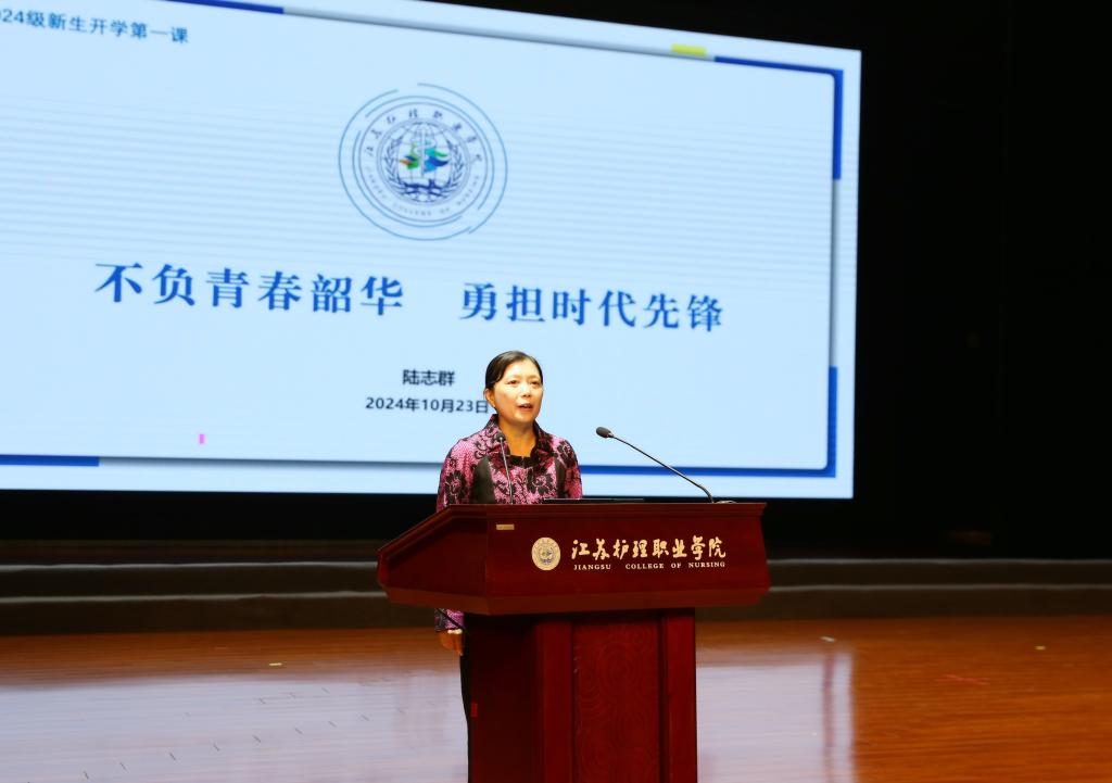 陆志群代表学校党委对全体新同学表示欢迎,并讲授开学第一课。她指出,服务人的全面发展、服务经济社会发展和服务国家重大战略,是新时代赋予职业教育的历史使命。党和国家对职业教育的重视程度之高前所未有,推动职业教育改革发展的力度之大前所未有,这为我们学习、成长创造了优良环境。选择了卫生健康专业,就是选择了未来以天下健康为己任。技能成才无捷径可走,只有坚持实践、勇于实践,在大量临床中磨好“金刚钻”,才能做好“瓷器活”。