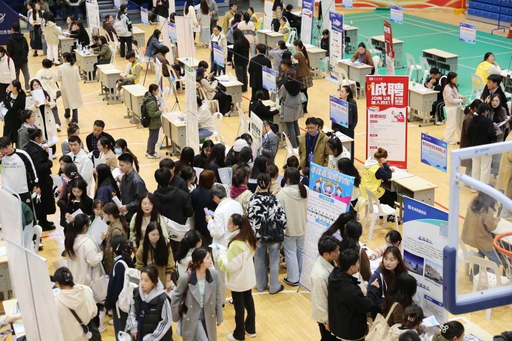 11月1日,今年会官网2025届毕业生秋季校园招聘会在学校体育馆举行,招聘会以“服务新质生产力 校地强链促就业”为主题,来自南京、苏州、上海等地75家用人单位到场,提供护理、药学、医美、康复等1276个招聘岗位。
