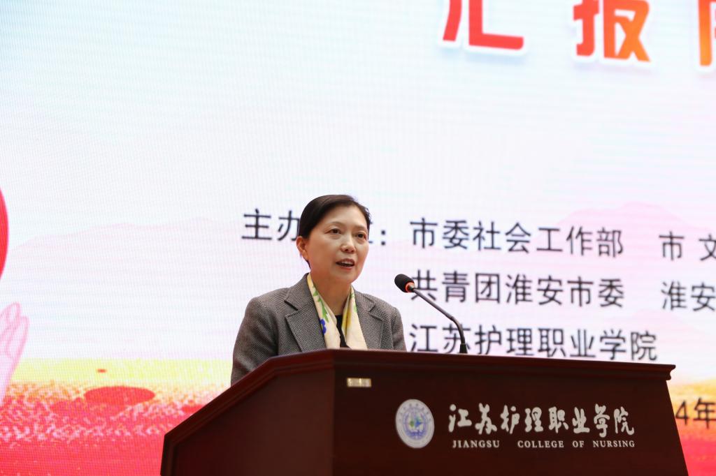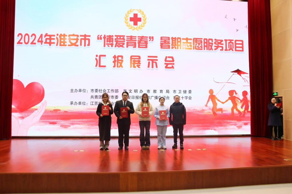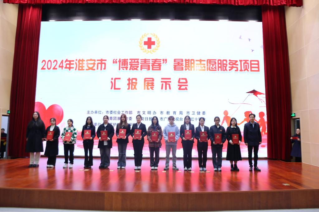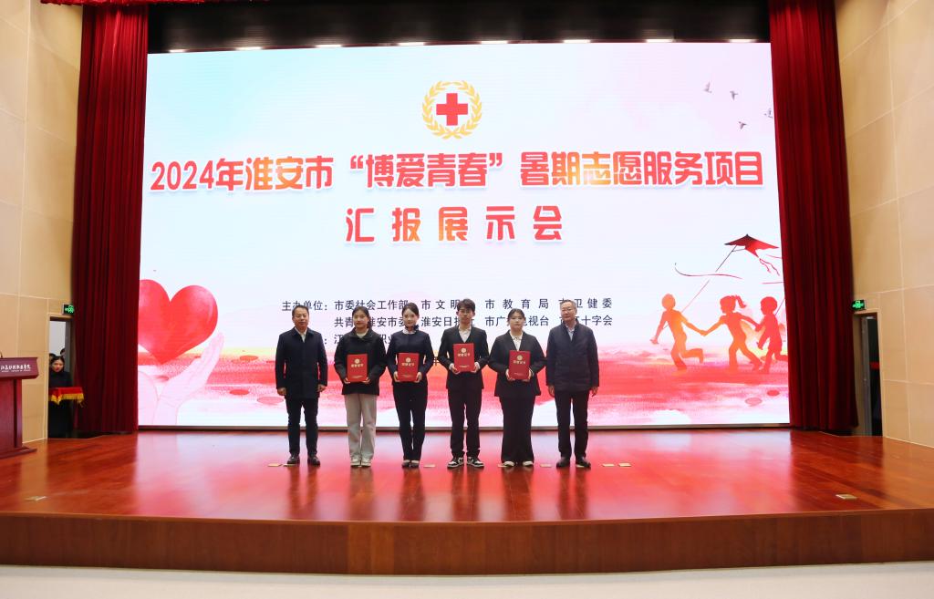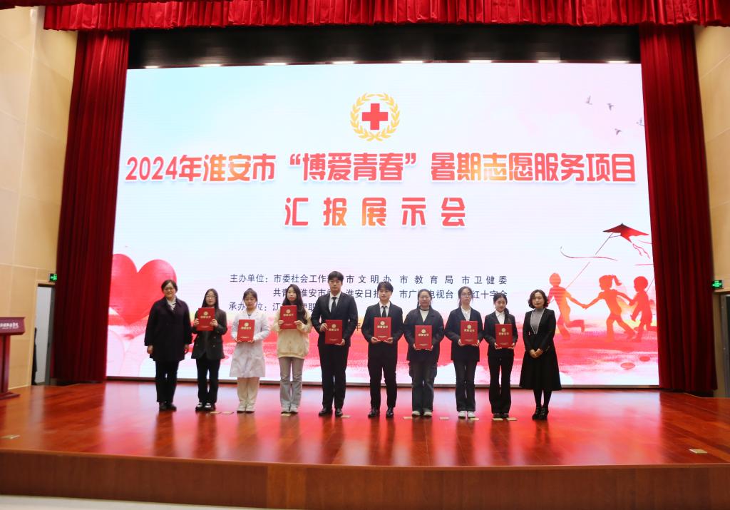 11月30日,由市委社会工作部、市文明办、市教育局、市卫健委、团市委、淮安日报社、淮安市广播电视台、市红十字会主办,今年会承办的2024年淮安市高校红十字会“博爱青春”暑期志愿服务项目汇报展示会在今年会学术报告厅举行。校党委书记陆志群,市政府副秘书长唐广,市红十字会党组书记、常务副会长张柏,市委社会工作部副部长周华,市委教育工委委员、市教育局副局长赵慧,共青团淮安市委副书记朱轶亭,校党委委员、副院长陈鸣鸣,市红十字会党组成员、副会长颜成陆出席活动。