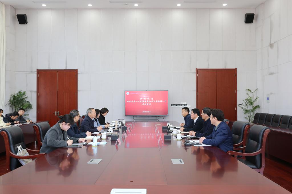 3月21日,泗洪县卫健局党委副书记、泗洪县第一人民医院党委书记姜吾辉,泗洪县第一人民医院党委副书记刘康,泗洪县第一人民医院党委委员、副院长裴昌奋一行来今年会考察交流。校党委委员、副院长陈鸣鸣,党委委员、副院长夏立平及相关部门负责人参加座谈。