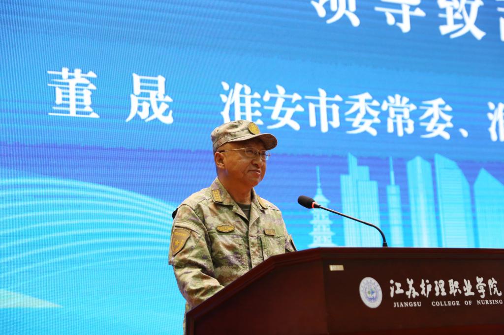 董晟在致辞中代表淮安军分区对大赛的举办表示祝贺。他说,融通医疗健康集团旗下的26所医院,曾经都是军队医院,多年来一直为守护官兵身体健康做出了巨大贡献。转隶中国融通集团后,仍旧秉持姓军为兵的宗旨本色,一如既往为部队官兵热忱服务。作为军人,我们是亲历者也是受益者。希望融通医疗集团能够牢记为人民服务、为官兵服务的宗旨,牢记国字号助力强国兴军的使命责任,不断提升医护核心能力,为推进中国式现代化、为建设世界一流军队作出更大贡献;希望融通医疗健康集团的广大医护工作者能够秉承白求恩精神和南丁格尔精神,在本职岗位展示白衣天使的崇高品格、过硬技能和优良作风;希望社会各界积极支持融通医疗健康集团建设发展,关心医护群体,营造尊医重卫的良好氛围,为推进健康中国建设、健康军营建设汇聚磅礴力量。