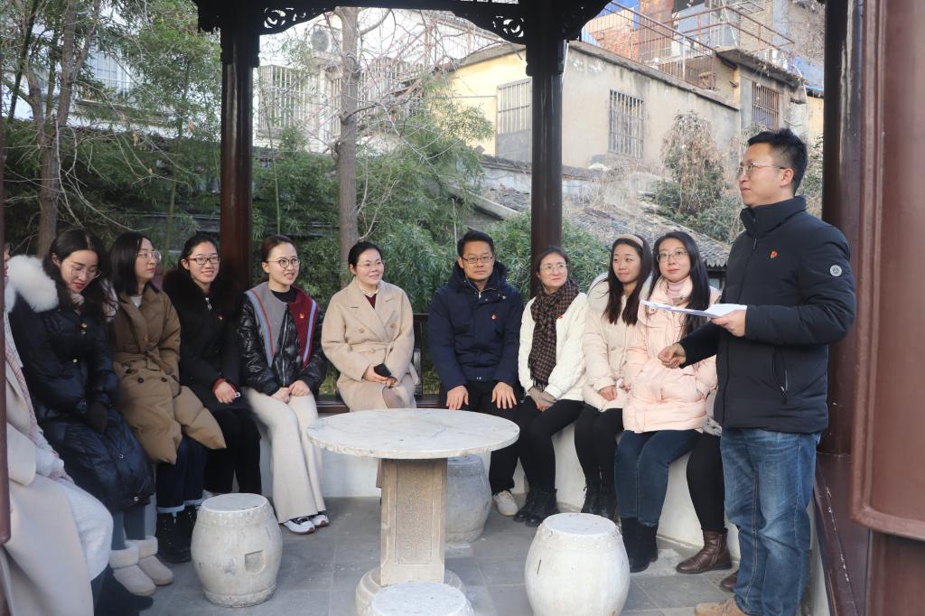 苏皖边区政府旧址纪念馆是首批“淮安市廉政教育示范基地”, 1985年经中共中央批准成立,它记录了我国新民主主义革命和建设这一段重要的历史,浓缩和诠释了丰富的历史文化遗存和革命文化。集体参观后,支部书记郭加明老师在氓公亭为支部全体教师党员带来了一场别样的沉浸式党课,他以苏皖边区政府主席李一氓的事迹故事展开,讲述了李一氓生平陈列室中一个小座钟背后的暖心故事,它是那个年代领导干部廉洁自律,与群众鱼水情深、打成一片的历史见证。郭加明老师提醒各位党员,作为学生工作者,首先要坚定正确政治方向,牢记为党育人为国育才初心使命;同时要守住工作纪律,时刻保持高度自警自省;更要敢作为,尽职尽责办实事,全力服务学生成长成才。
