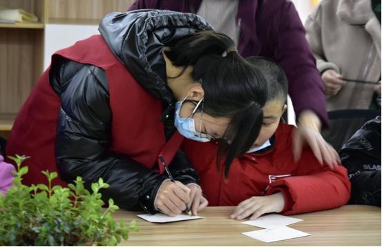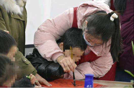 志愿者带领孩子们走进淮安市博物馆,了解淮安的历史文化、风土民情,小朋友们在不断地互动中,既学习了各种文物知识,又活跃了思维,在愉快的参观中学习了历史文化,体会了淮安作为历史文化名城的风貌,开拓了视野。回到学校后志愿者指导孩子们一起书写、张贴春联,同时将他们的新年愿望通过画画等形式在小卡片上表达出来,早早的为学校营造了一片祥和的过节气息。小朋友们在志愿者的手把手带领下,笔走龙蛇,稚嫩的笔触包含着对美好生活的祝福。一位小朋友亲手将写好的“福”字送给自己的妈妈,妈妈在孩子的新春祝福中热泪盈眶,冬日的寒冷慢慢消失,浓浓温情在这一刻悄然绽放!