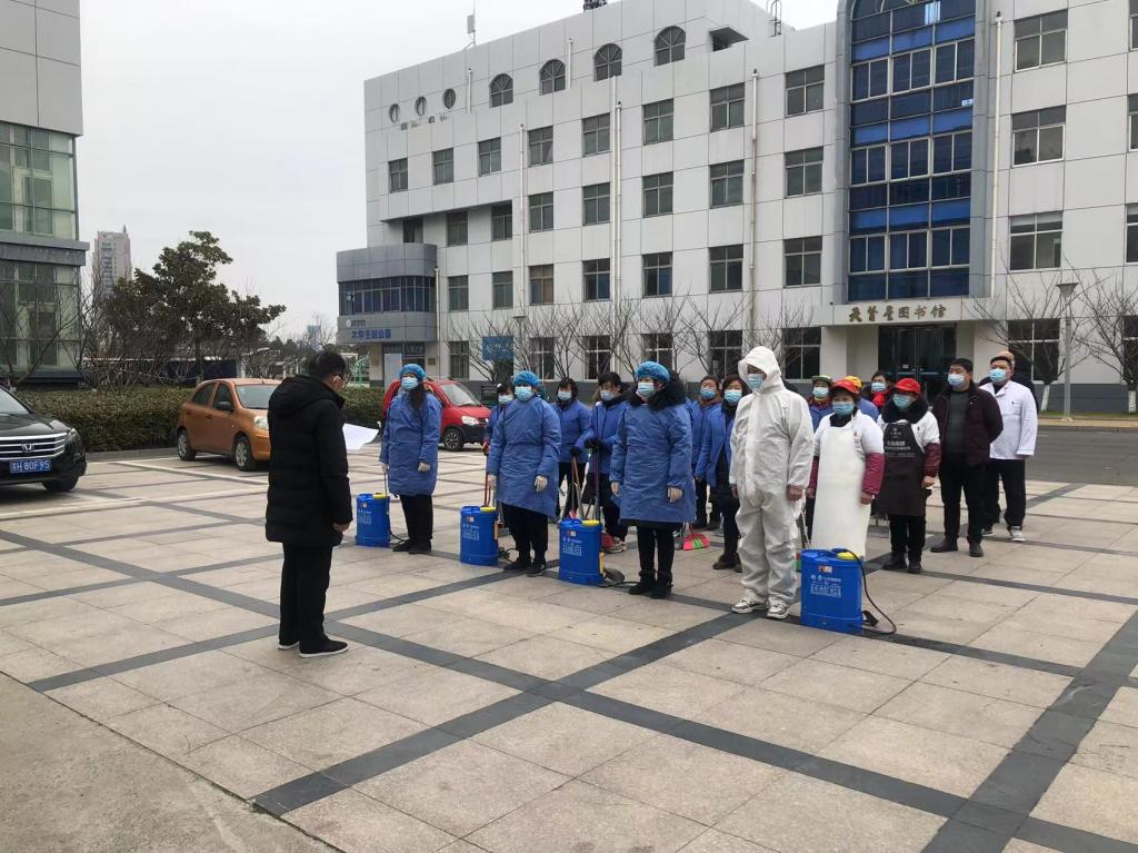 常培训,勤操练。2月16日至学生报到前,后勤保障处组织各科室、各外包服务单位先后开展了三场疫情防控培训演练。培训演练内容主要是学习学校春季学期开学疫情防控实施方案、部门疫情防控实施方案、疫情防控重点知识以及进行消杀演练。培训演练进一步深化了外包服务单位人员对疫情防控极端重要性的认识,提高了一线消杀人员的实操能力,为开学后大规模、高频率的消杀工作奠定了坚实的基础。