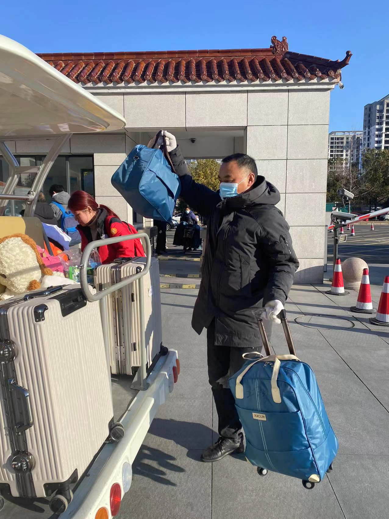 2月19日、2月20日,学生报到日。后勤各场所顺利全面启动运营,秩序井然。尤其在学生行李转运现场,饮食安全管理科副科长叶玉虎、绿色校园管理科负责人左春、江苏欣祥物业公司项目经理吴开洪等人组成的行李转运党员志愿者队伍,冒着初春的严寒一趟一趟地为学生搬运行李,以他们为代表的“后勤人跨前一步主动作为、全心全意为广大师生服务”的良好形象,进一步树立,也必然会收获广大师生的普遍肯定与赞誉。