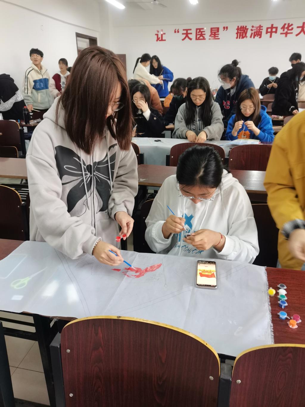 本次活动约20人参加,通过小组合作共计制作风筝12个,活动后续将开展作品评比。周末同学们将带着这些风筝在操场开展放风筝比赛,愉悦身心的同时,也让社会主义核心价值观走近更多人,深刻塑造大学生精神家园的灵魂。