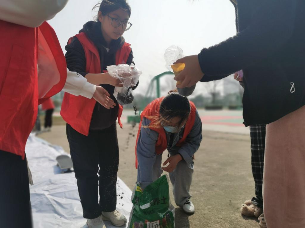 活动宣传以来,同学们热情高涨,积极通过QQ空间转发等多种方式参与活动。活动前期,23位志愿者布置现场,张贴横幅,分类花种,将花盆提前装好营养土。
