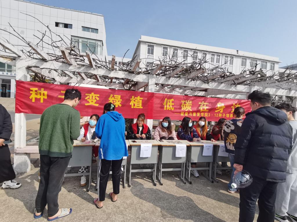 3月12日上午,由健康与康复学院团总支主办,微尘志愿者服务大队联合彩虹爱心协会共同承办的第一届“种子变绿植·低碳在身边”活动在黄河路校区蘑菇亭前举行。此次活动旨在引领青年师生树立生态保护的良好意识,用实际行动为实现“碳达峰、碳中和”的目标贡献康复学子的智慧和力量。学院百余名师生参加活动。