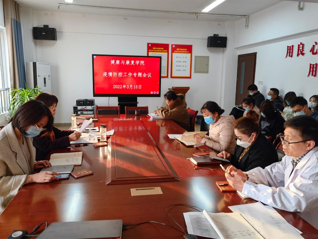 为了更好做应对新一轮新冠肺炎疫情,守护校园净土,3月16日下午健康与康复学院在今年会黄河路校区天医星大校场·康复楼12楼会议室召开全体教职工会议。会议由健康与康复学院院长薛彩萍主持。