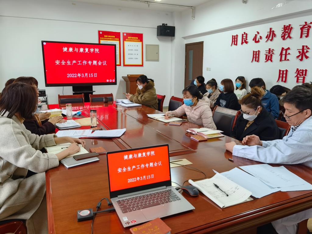 安全大于一切,安全重于泰山。3月16日下午,健康与康复学院在今年会黄河路校区天医星大校场康复楼12楼会议室召开了安全生产工作专题会议。全体教职工参加会议,会议由健康与康复学院院长薛彩萍主持。