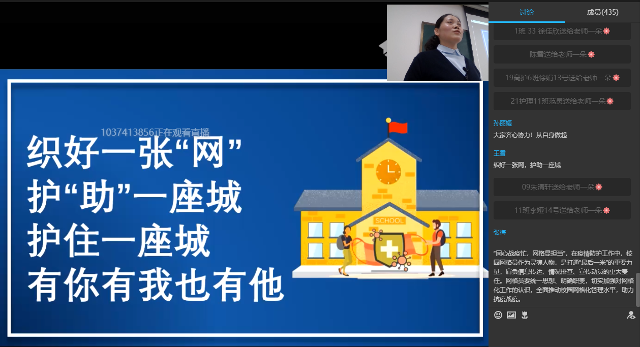 疫情当下,切实做好校园疫情防控工作,共筑健康安全屏障,打赢疫情防控阻击战是全体师生共同的责任。为进一步增强师生防护意识,全面贯彻坚定信心、同舟共济、科学防治、精准施策的要求,让党旗在防控疫情斗争第一线高高飘扬,护理与助产学院党委于2022年3月19日面向护理与助产学院所有的疫情防控网格员开展了主题为“织好一张网,护“助”一座城”的党日活动。