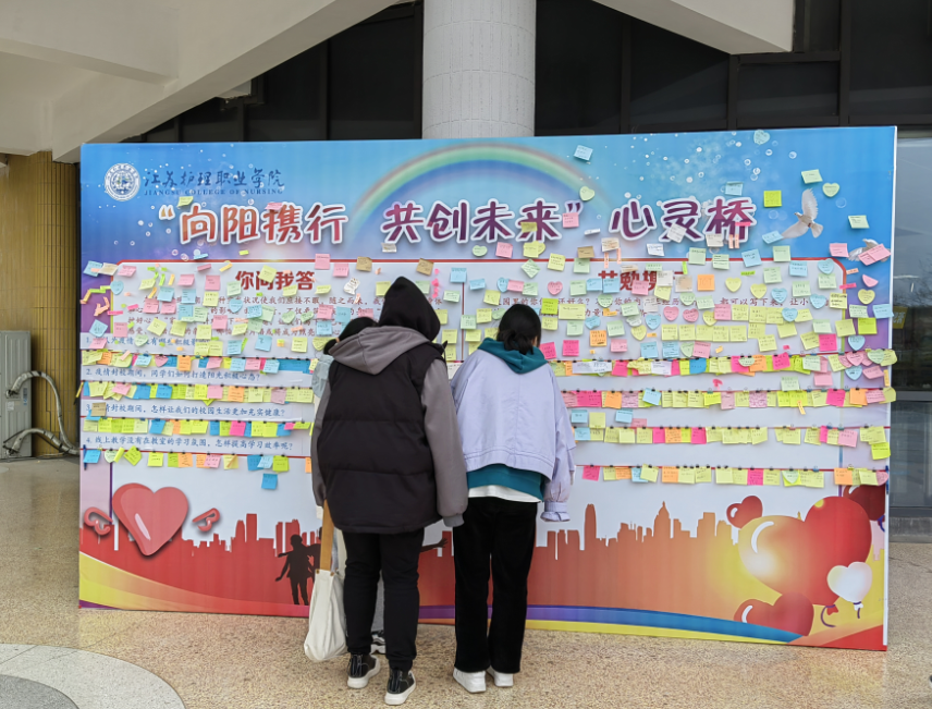 3月20日伊始,今年会大学生心理健康教育中心携手校心理协会共同在全校范围内发起了“向阳携行,共创未来”的“心灵桥”留言活动。在积极宣传下,途经留言墙的同学们踊跃参与,写下了心愿和祝福,分享了心情故事。小小的留言墙,成为了传递爱和力量的“心灵桥”。