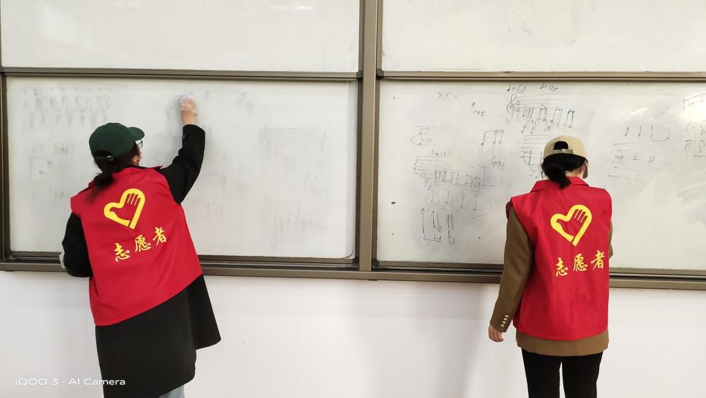 结合文明校园建设和生态建设,志愿者们清理教学楼黑板和宿舍楼下绿化带,为创建文明校园添砖加瓦。“巧手剪党徽,丹心颂党恩”,同学们用一幅幅作品表达对党满腔的热爱与美好祝愿; 通过开展“国之栋梁不可无,生命之水不可枯”“但求方寸,留予后人”“奏响树之乐章,环保常驻心中”等主题活动,引导学生加强节水、节能意识,注重生态文明。