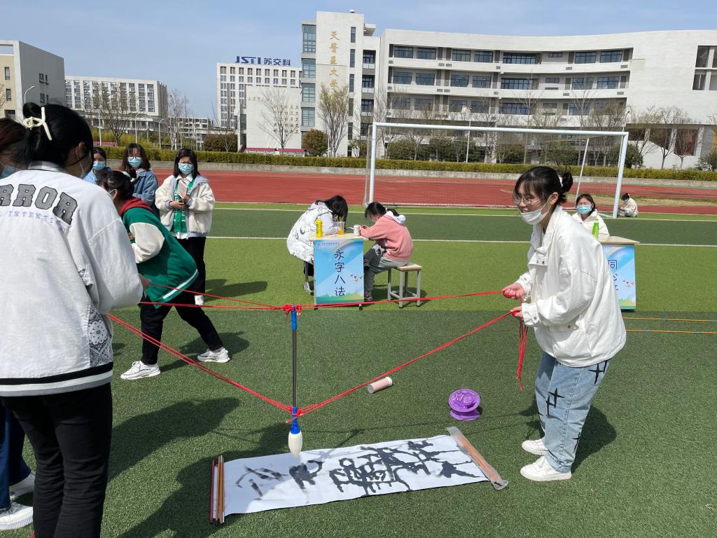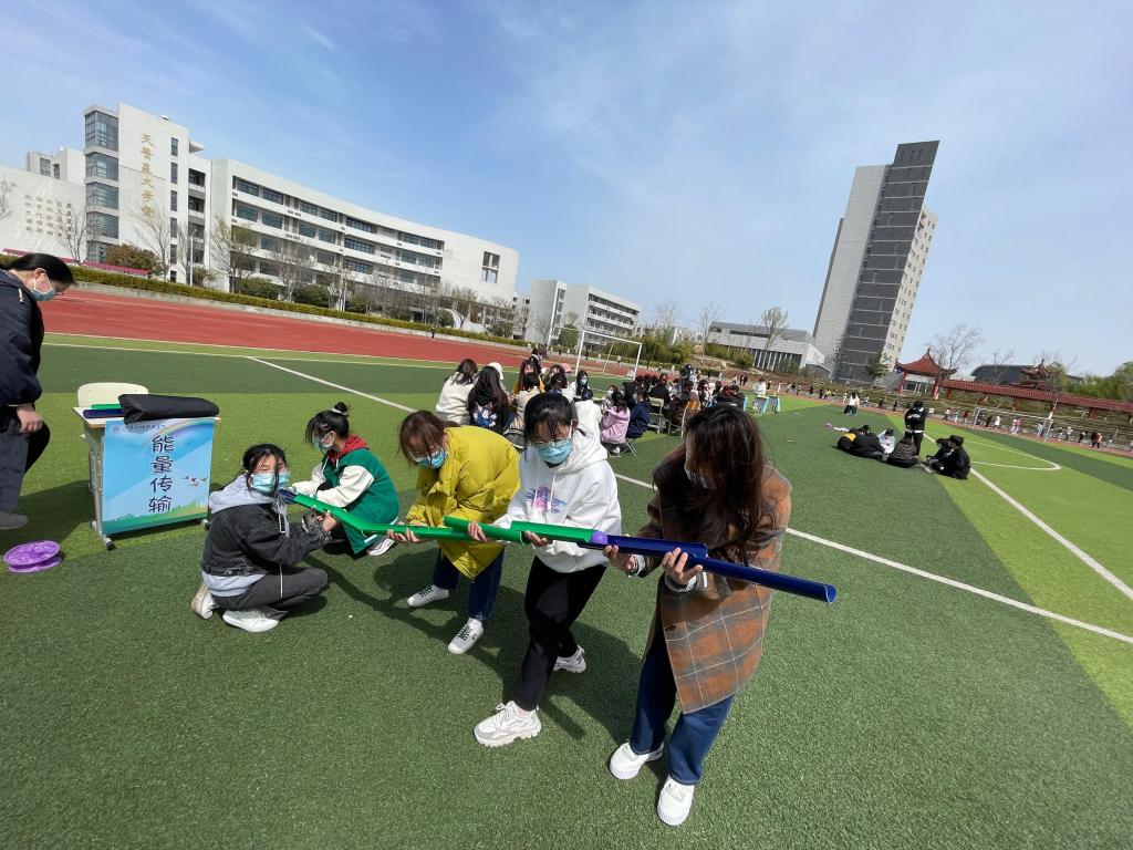 袋鼠跳、摸石过河等活动简单易操作,但需较好的身体柔韧性,也考验参与者的体力。永字八法、能量传输、不倒森林等活动不仅需要参与者手眼协调,还需要很强的团体意识和协调能力,否则很难完成任务。在参与活动中,同学们不仅锻炼了身体,而且释放了压力,增进了交流,感受着温情。同时,活动中严格落实疫情防控要求,做到戴口罩、保持一米线距离、每个轮次参加活动的人数不超过50人。在一片欢声笑语中活动圆满结束了。