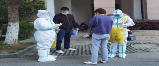 图4 在社区工作人员指引下准备上门采集核酸