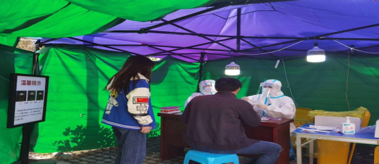 4月16号,老师们被分配到了苏州相城区黄埭镇的春申、长康、斜桥和三埂四个社区核酸采样点。清晨4点起床,简单洗漱后就出发了,到了社区后,化整为零,一个人就是一个点,一个人就是一面旗帜,穿好大白,做好防护工作,立即投入当天的采样工作,配合当地社区,完成17万多居民的核酸采集工作。