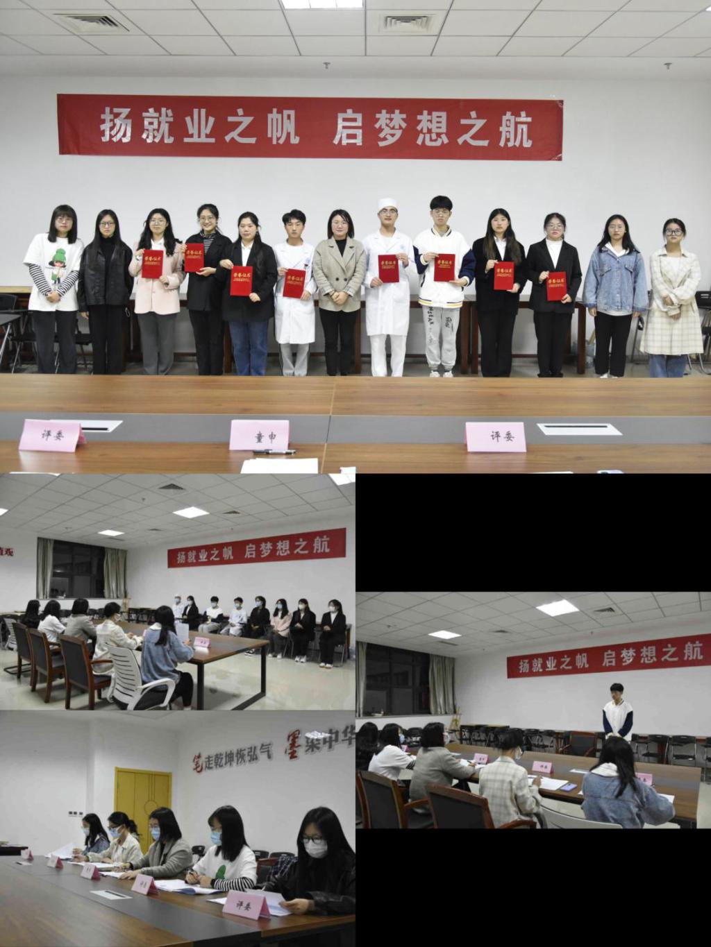 本次比赛经过前期的线上报名和简历筛选,最终9名选手进入决赛。决赛现场共分三个环节,自我介绍、专业回答和评委提问。参赛同学虽略显紧张,但是很快就进入比赛状态,面对提问沉着应对,表现落落大方。经过激烈的比拼,最终20护理4班桑瑶、20药学1班王卫中获得一等奖,20护理1班马帮耀、20护理12班张莹莹、18高检楼梓晔获得二等奖,20护理12班朱晓萱、21医美2班邱楠楠、21检验4班朱芸青、20药学1班刘峥嵘获得三等奖。