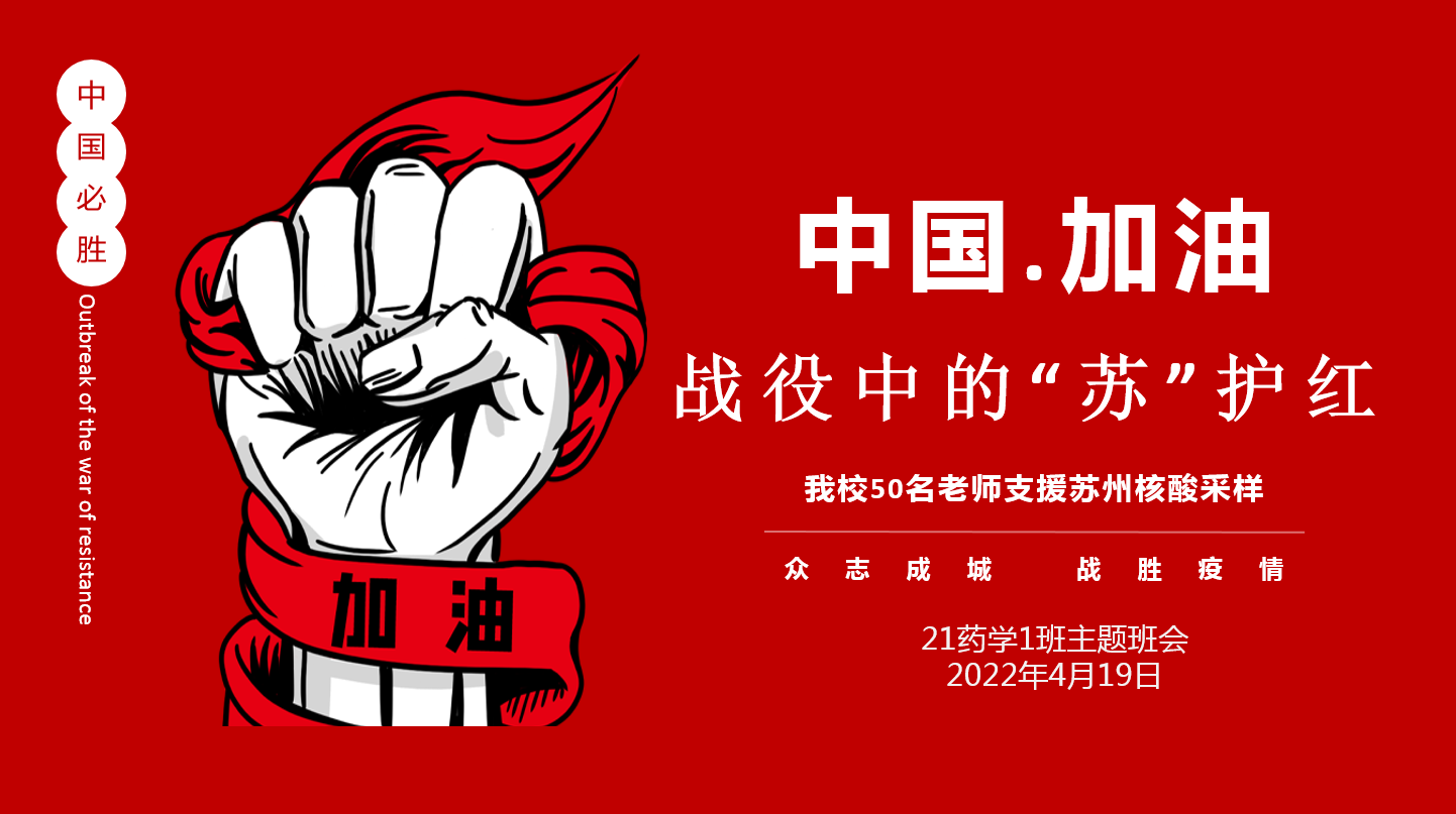 “我就是一名党员,穿上防护服的那一刻,我啥也不怕了!”陈桂娟老师说道。为学习今年会50名老师赴苏州抗击疫情的精神,21药学1班与药学院党员教师,开展了一次跨时空的主题班会。驰援苏州核酸采样工作队总领队、临时党总支书记刘家秀书记、两位赴苏抗疫老师陈桂娟、蔡晓娜和21药学1班全体同学参加本次主题班会,班主任丁旭老师主持。