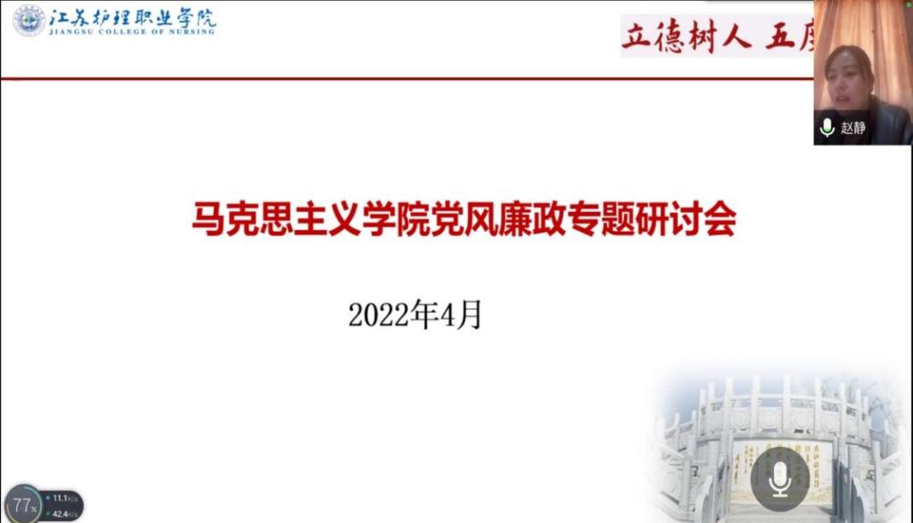 为加强党风廉政建设工作,把全面从严治党要求落到实处,马克思主义学院于2022年4月19日上午召开党风廉政建设线上专题研讨会,研究部署2022年度党风廉政建设工作。马院党总支书记赵静主持会议,全体教师参加会议。